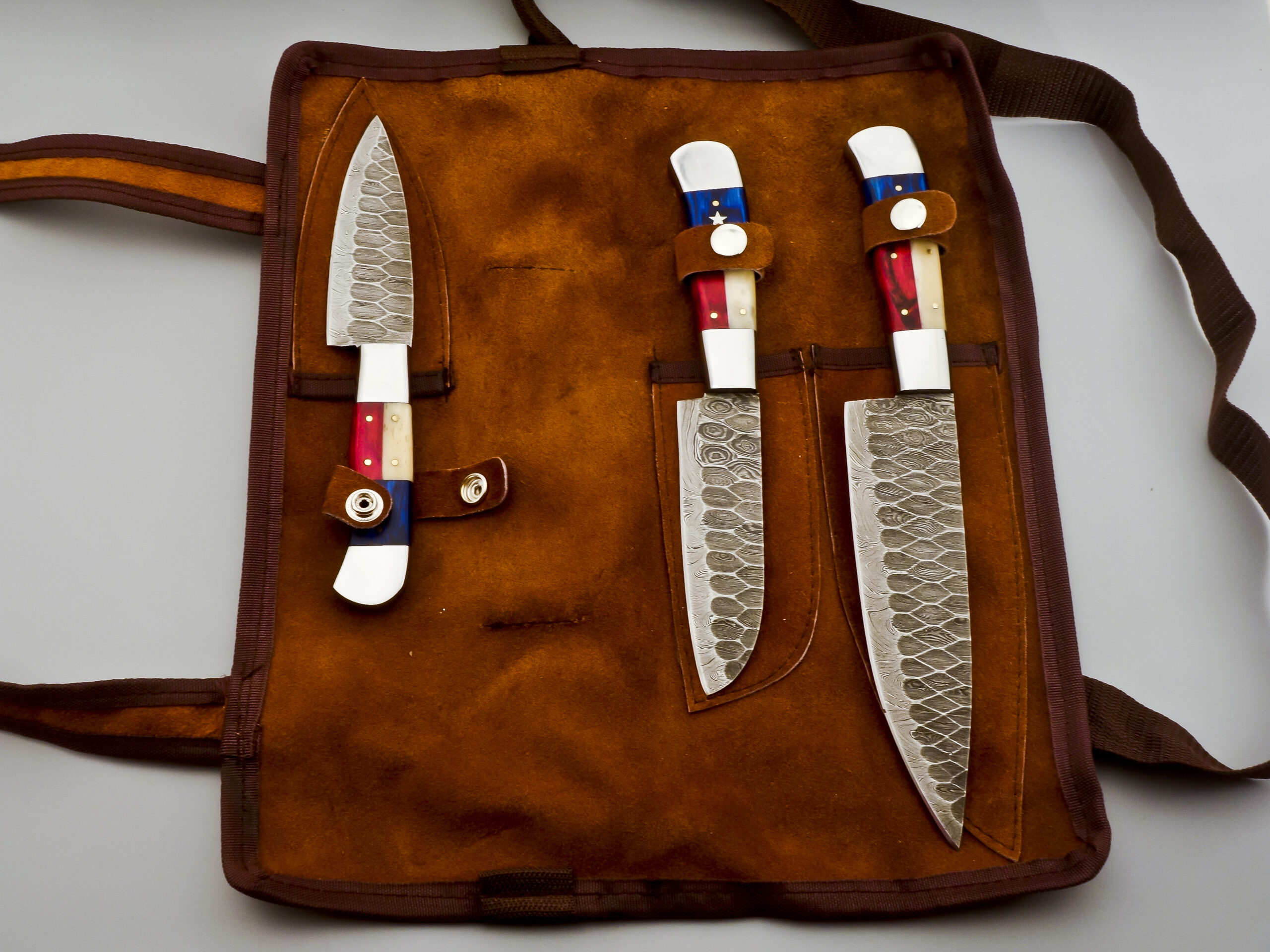 Damascus Steel 3-Piece Texas Flag Knife Set